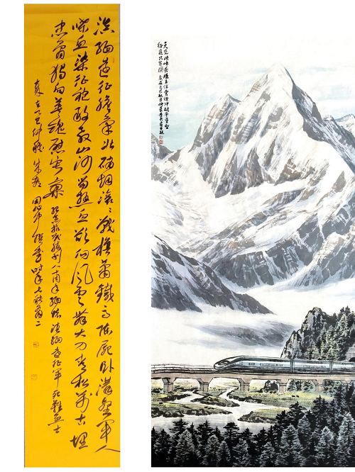 左:馆员田旭中捐赠作品《缅怀滇缅远征军壮士》